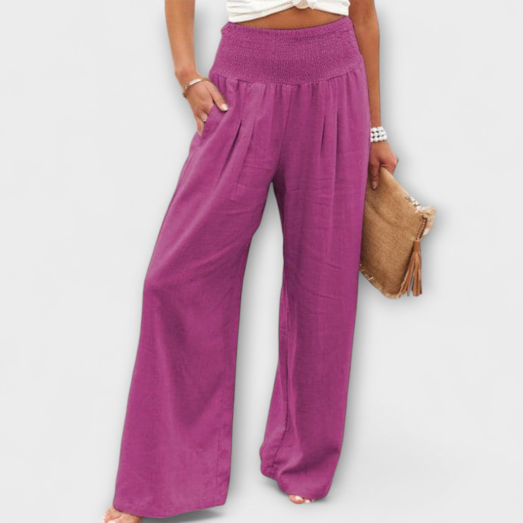 Die Thearya-Hose kombiniert ein großzügiges und lässiges Design mit maximalem Komfort und einem eleganten Look. Der mittelhohe Bund sorgt für eine bequeme Passform, während die Vielzahl an Farboptionen sie zur idealen Wahl für entspannte Tage oder besondere Anlässe macht.