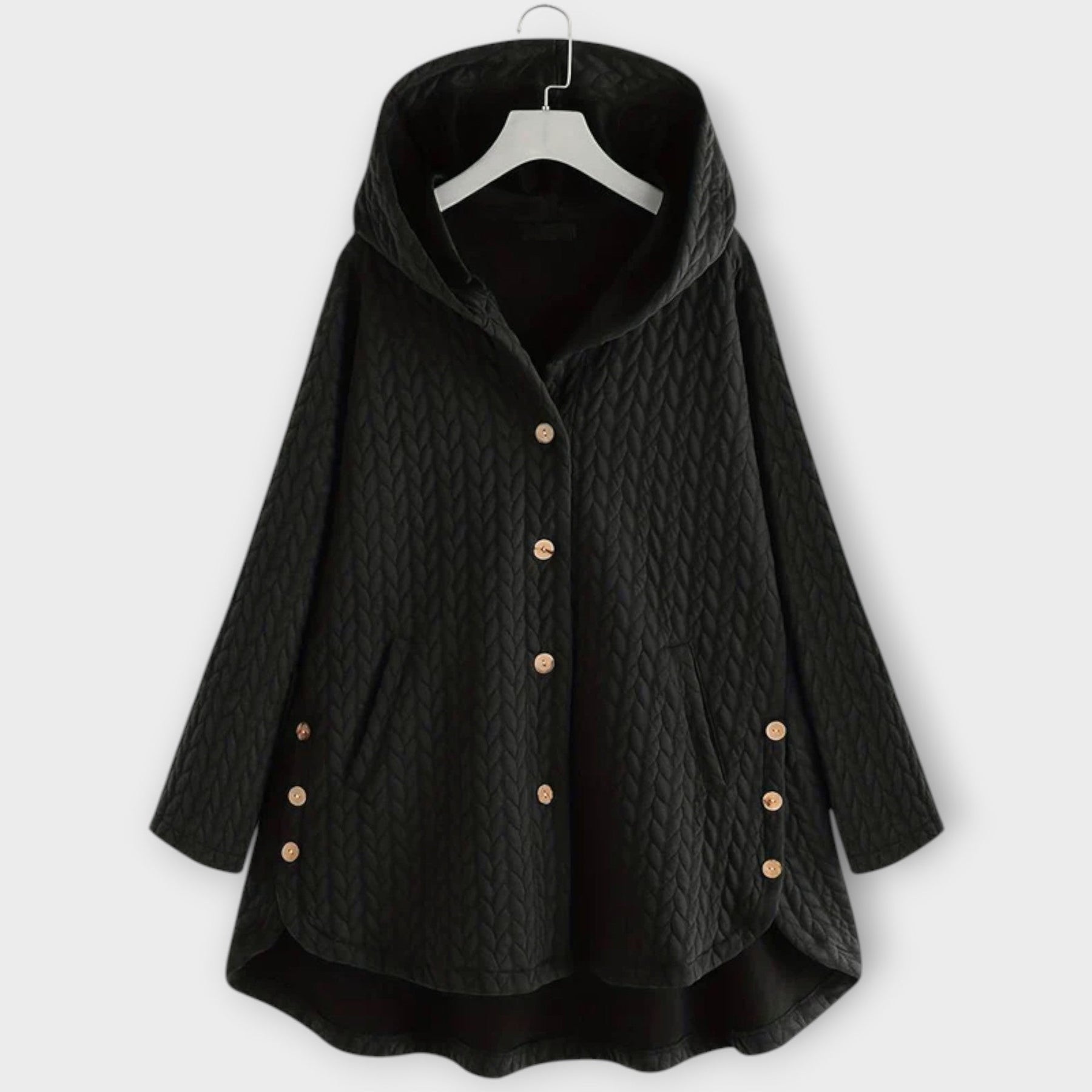 Lerina vereint gemütliche Wärme mit klassischer Schlichtheit. Der weit geschnittene Stil garantiert Bewegungsfreiheit, während die markante Knopfreihe einen eleganten Akzent setzt. Eine Jacke, die Komfort und Stil mühelos kombiniert und dich an kühlen Tagen zuverlässig begleitet.