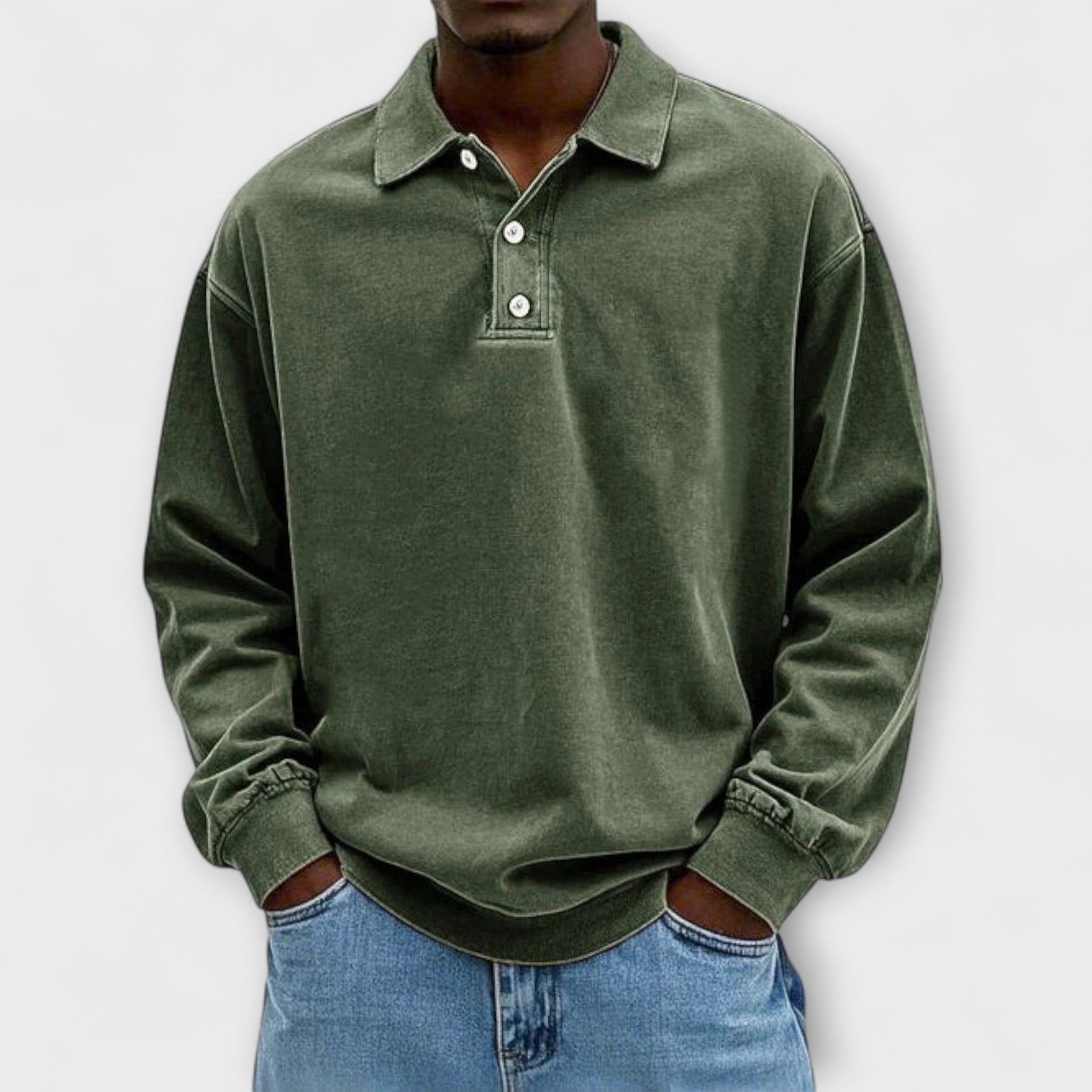 ✔️ Der traditionelle Polokragen und die leicht oversized Passform schaffen eine legere Silhouette, während die Bündchen und der gerippte Saum einen Hauch von Struktur hinzufügen. Dieses Hemd ist perfekt für einen mühelosen Layering-Stil.