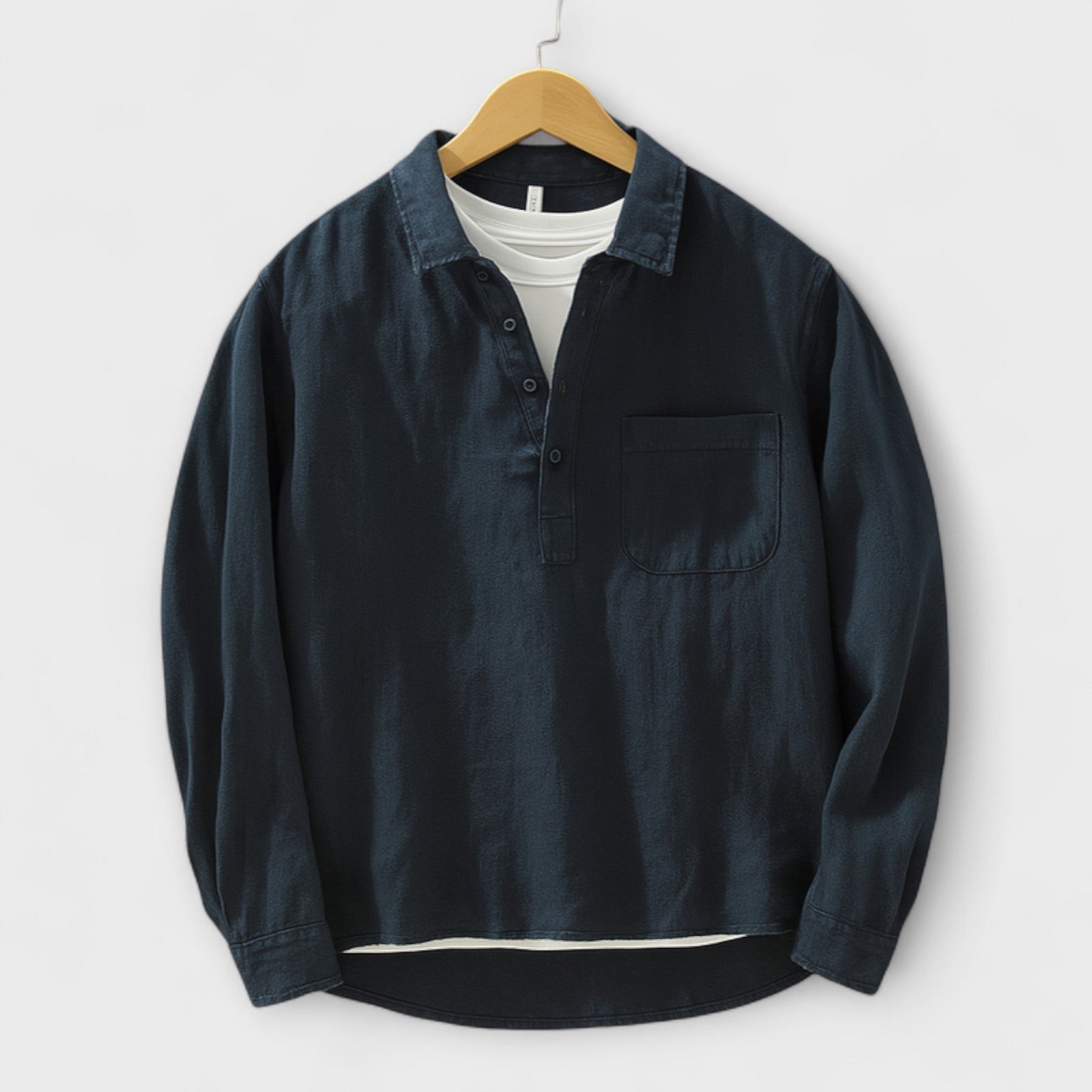 Erhöhe deine Garderobe mit dem Leinen Popover Hemd, einem Kleidungsstück, das informelle Eleganz und Modernität vereint. Hergestellt aus einer Mischung aus Baumwolle und Leinen, verkörpert es das perfekte Gleichgewicht zwischen Komfort und Raffinesse für all deine Anlässe.