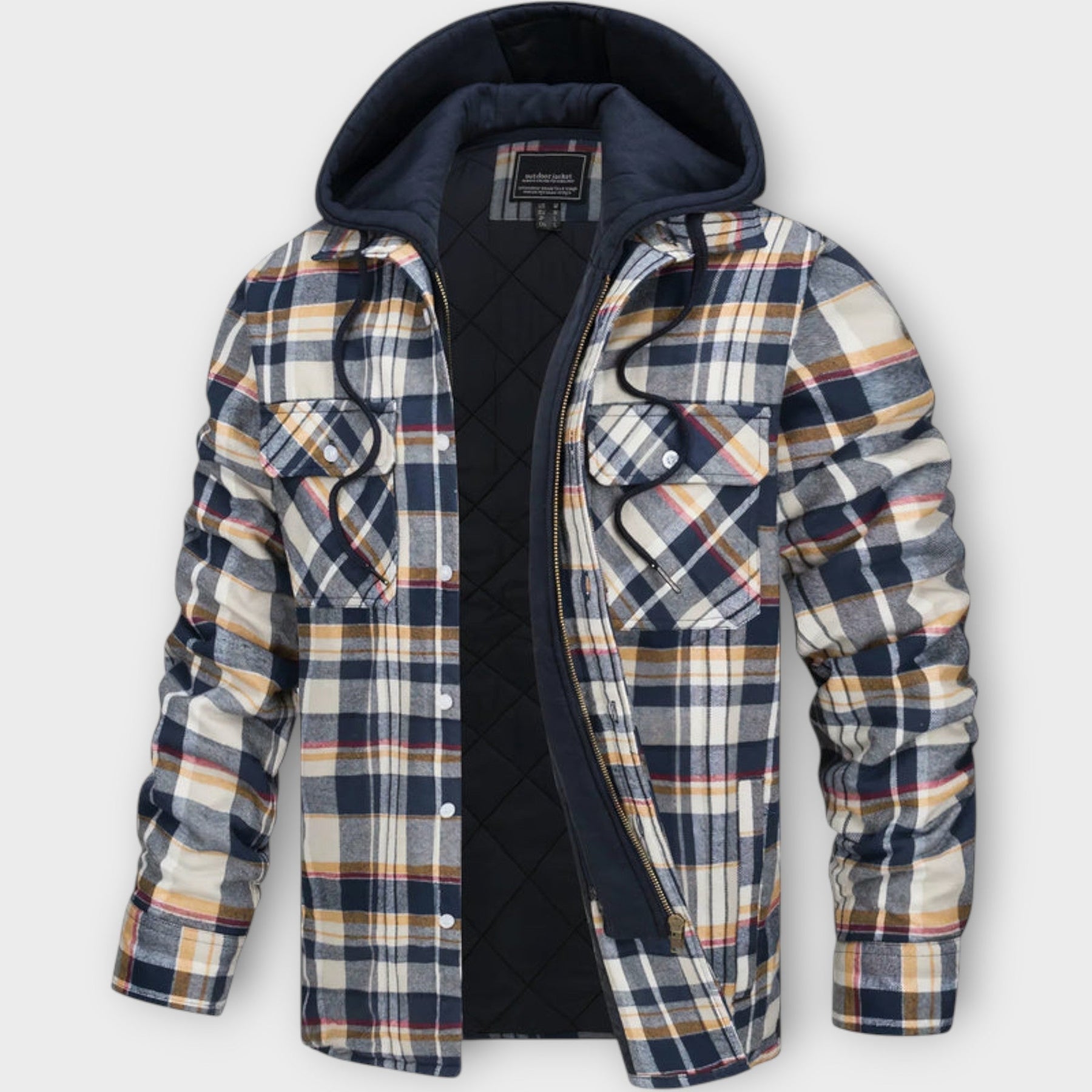 Die Gestepptes Karojacke Cooper ist für diejenigen entworfen, die Wärme, Praktikabilität und einen Hauch von rustikalem Charme schätzen. Mit ihrem mutigen blau-schwarzen Karomuster und abnehmbaren Kapuze verbindet sie lässigen Stil mit notwendigem Schutz. Die gesteppte Füllung hält dich an kühlen Tagen warm, während der strapazierfähige Außenstoff einen leichten Wasserabweis bietet, was sie zu einer vielseitigen Jacke für lässige Ausflüge und Outdoor-Abenteuer macht.