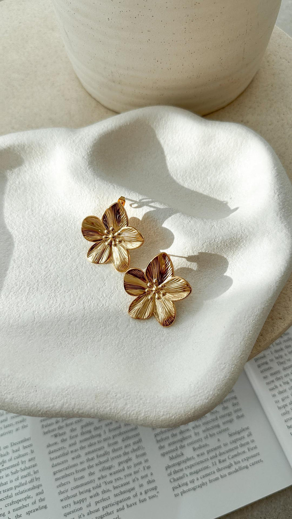 Die vergoldeten Blütenohrringe Lexi sind eine faszinierende Ergänzung für jede Schmuckschatulle. Entworfen, um jeder Gelegenheit Raffinesse und Schönheit zu verleihen, sind sie der perfekte letzte Schliff für einen gepflegten Look.