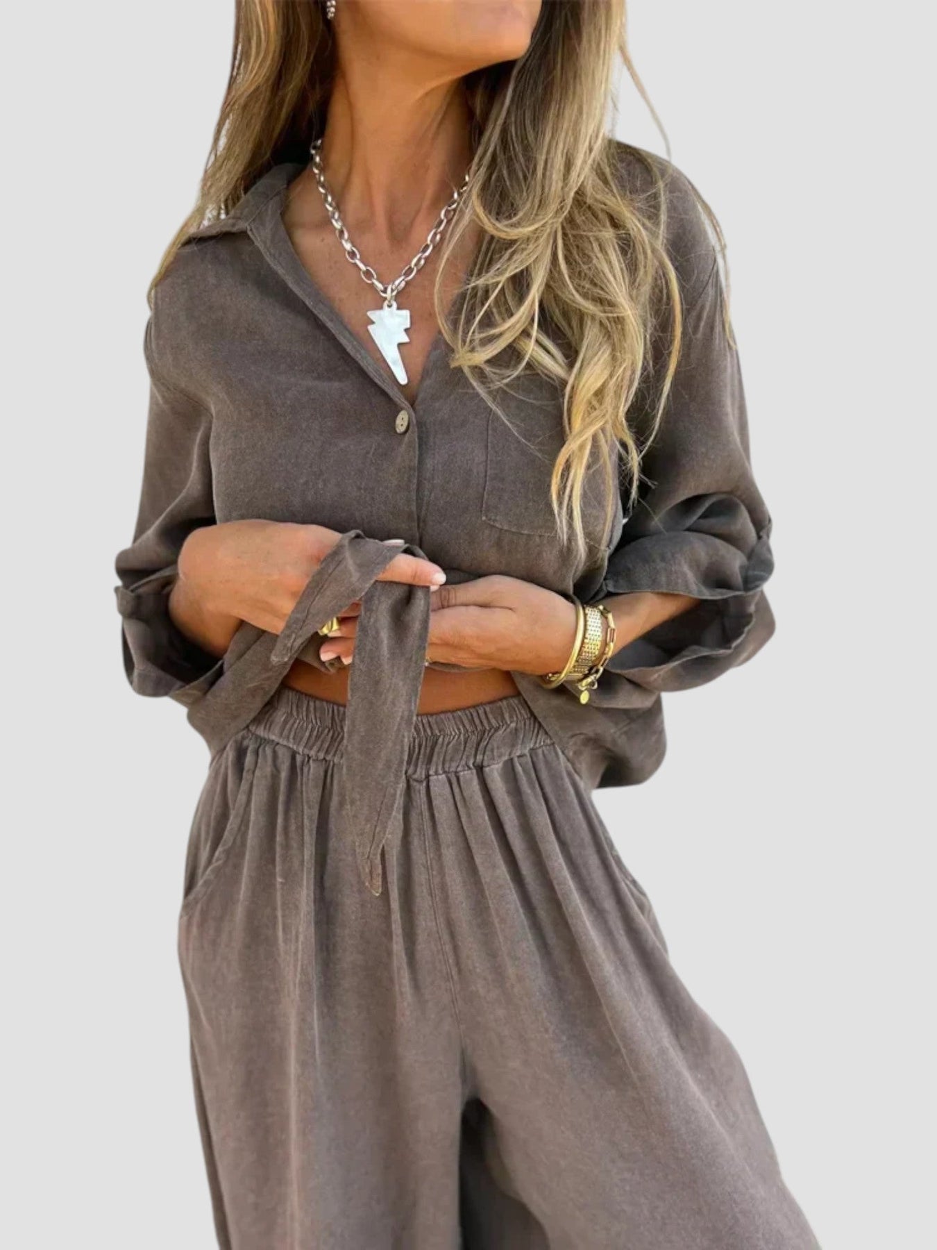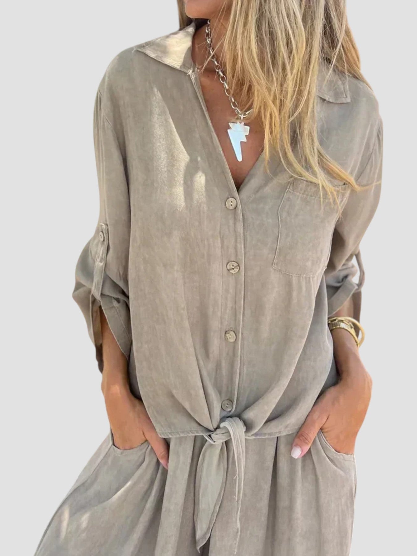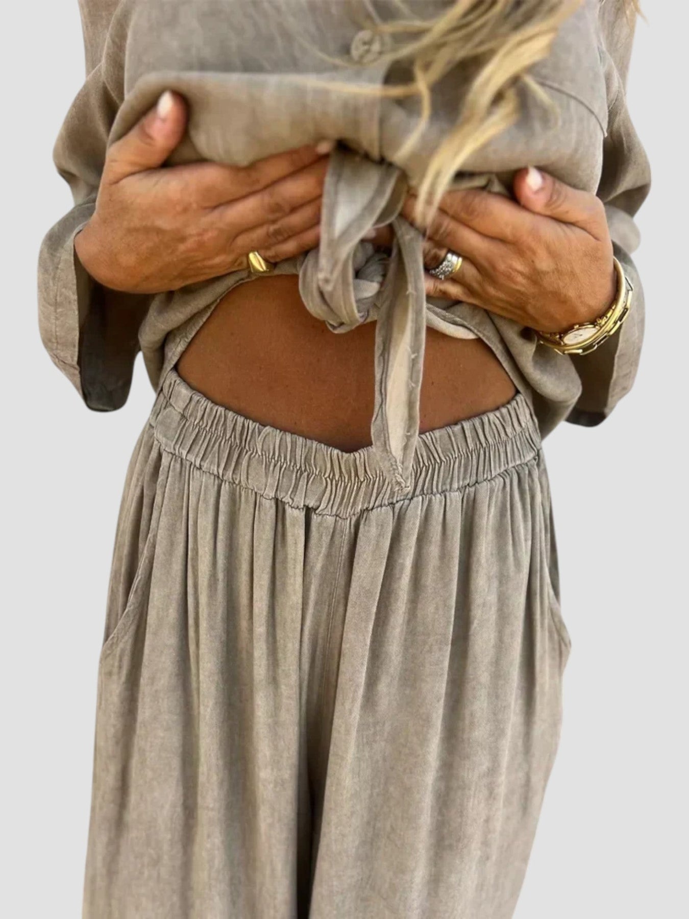 Angelica ist das Zweiteiler-Outfit, das in deinem Sommerkleiderschrank nicht fehlen darf. Leicht, harmonisch und unglaublich vielseitig — perfekt für sonnige Tage, Wochenendausflüge oder lässig schicke Momente in der Stadt.