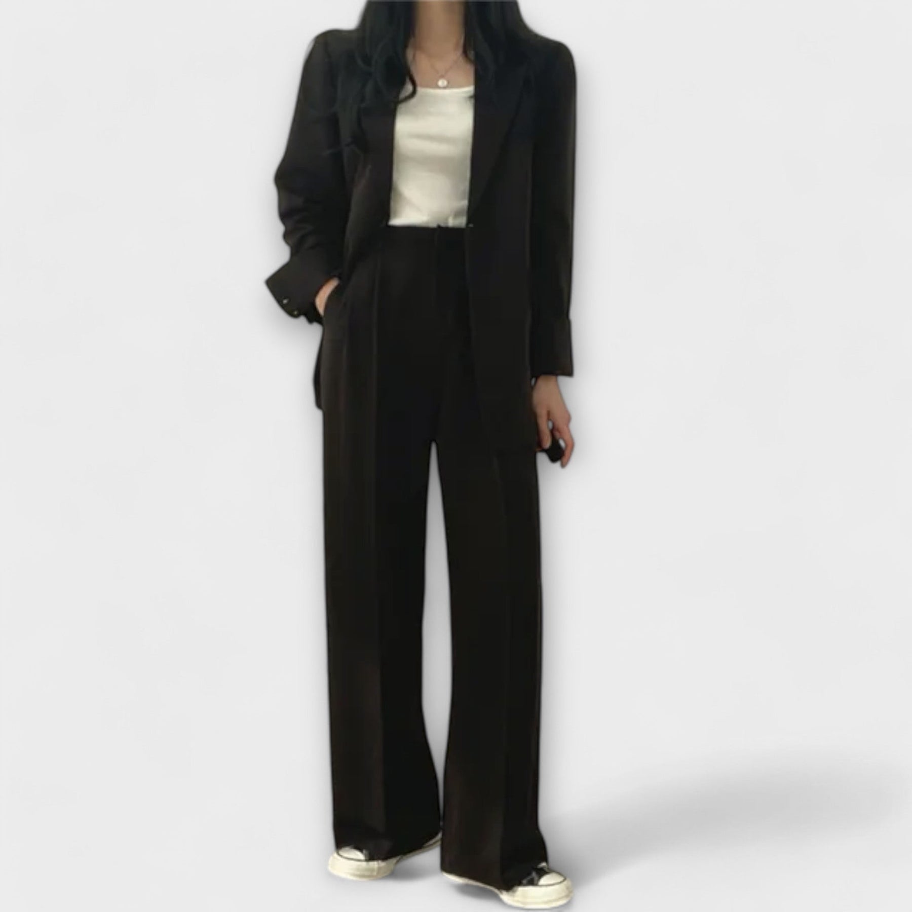 Aktualisieren Sie Ihre professionelle Garderobe mit dem Damenanzug in zwei Teilen Nova, einem klassischen Anzug, der Klasse und Eleganz ausstrahlt. Dieser zeitlose Anzug ist ideal für Geschäftstreffen, formelle Anlässe und überall dort, wo Sie einen raffinierten Eindruck hinterlassen möchten. Hergestellt aus hochwertigen Materialien, bietet er einen bequemen Sitz und Langlebigkeit. Die figurbetonten Hosen und die elegante Jacke schaffen eine ansprechende Silhouette, die Ihr Selbstbewusstsein und Ihren Stil unterstreicht.